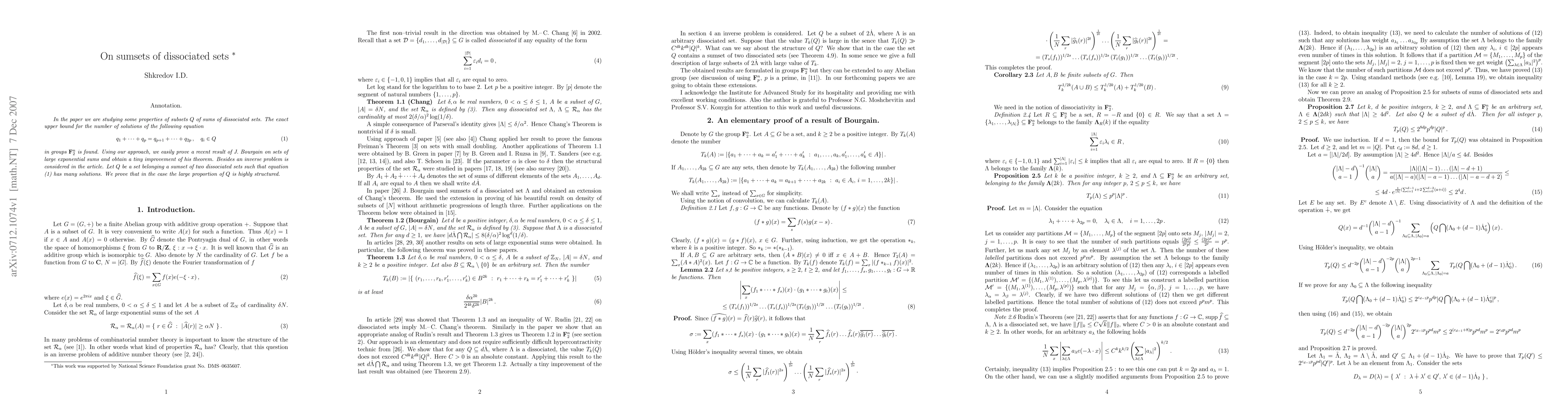 A research paper explores properties of subsets within sums of dissociated sets, finding an upper bound for solutions in groups F_2^n and proving a recent result on sets of large exponential sums with an improvement.