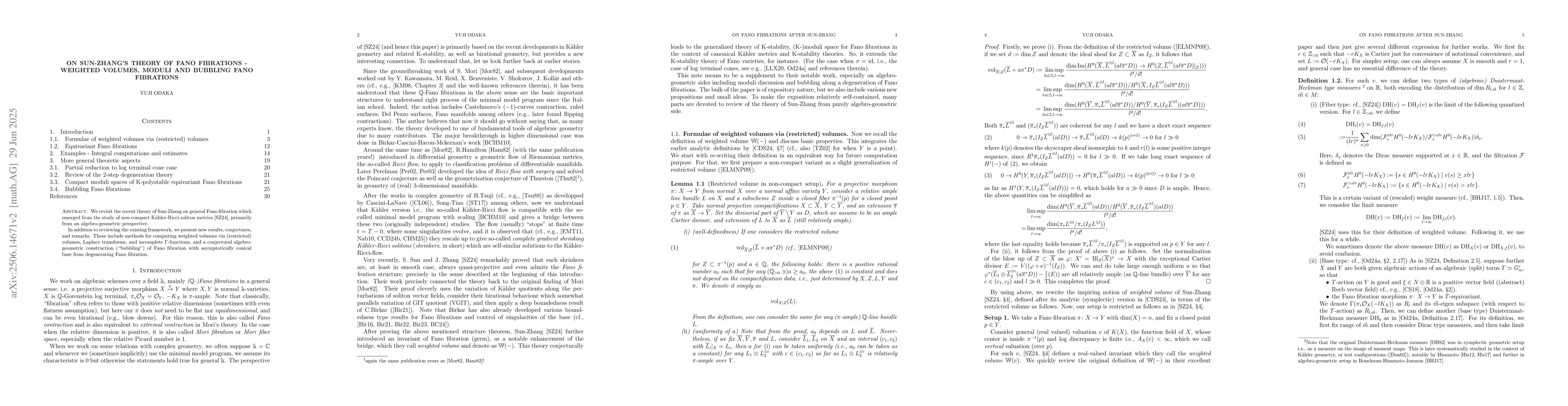 We revisit the recent theory of Sun-Zhang on general Fano fibration (germs) which emerged from the study of non-compact Kahler-Ricci soliton metrics, primarily from an algebro-geometric perspective. In addition to reviewing the existing framework, we present new results, conjectures, and remarks. These include methods for computing weighted volumes via (restricted) volumes, Laplace transforms, and incomplete Gamma-functions, and a conjectural algebro-geometric construction (``bubbling") of asymptotically conical Fano fibrations from degenerating Fano fibrations.