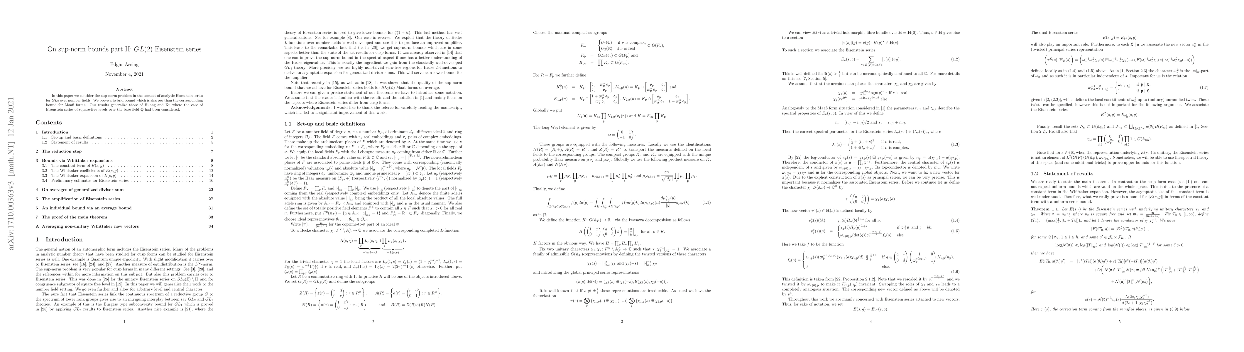 This paper proves a sharper hybrid sup-norm bound for $GL(2)$ Eisenstein series over number fields compared to the existing bound for Maa{\ss} forms, generalizing prior results by Huang and Xu for square-free levels over $\mathbb{Q}$.