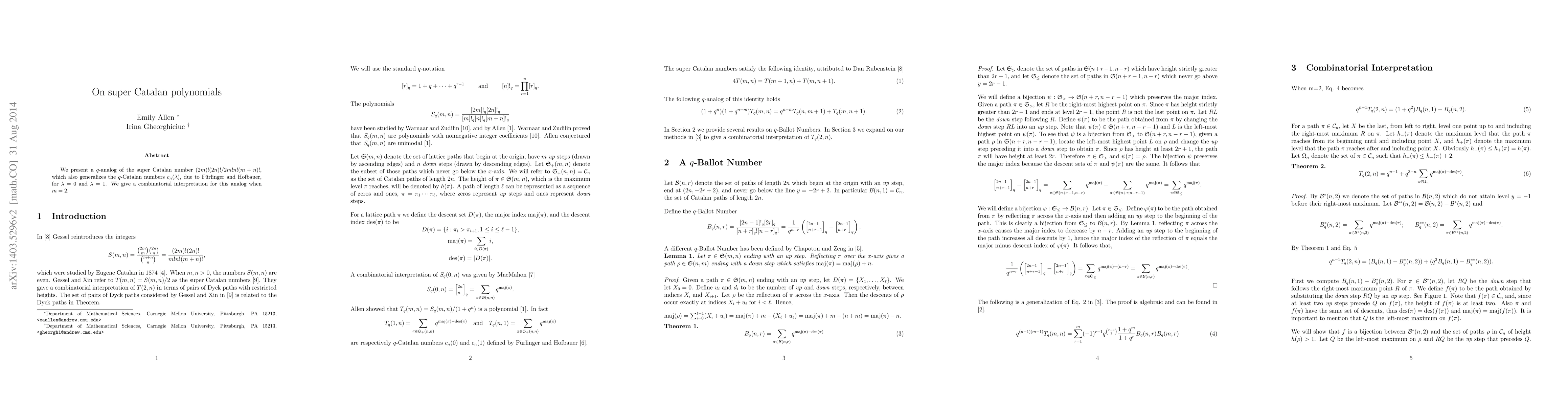 The paper presents a $q$-analog of the super Catalan number, generalizing the $q$-Catalan numbers for $\lambda=0$ and $\lambda=1$, and provides a combinatorial interpretation for this analog when $m=2$.