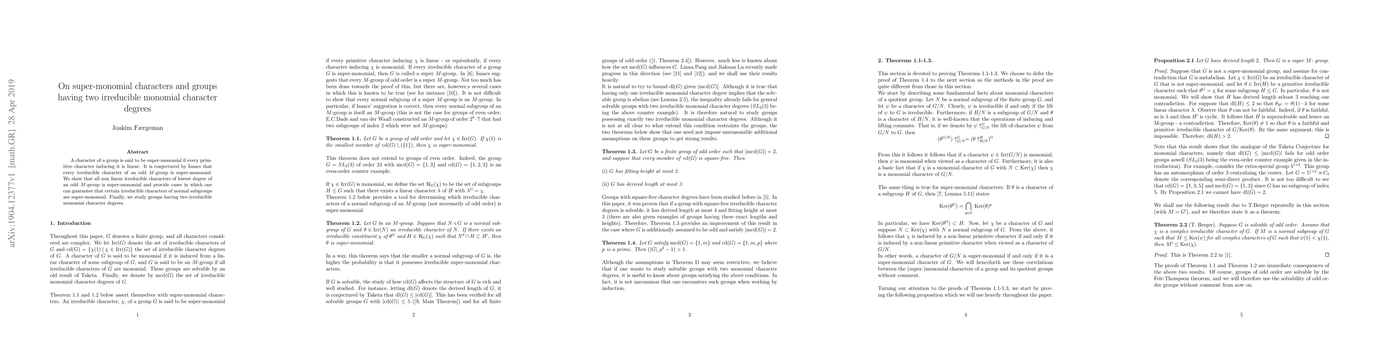 Summary: This paper proves that all nonlinear irreducible characters of lowest degree in odd $M$-groups are super-monomial and explores conditions ensuring super-monomiality in certain normal subgroup characters. It also investigates groups with exactly two irreducible monomial character degrees.