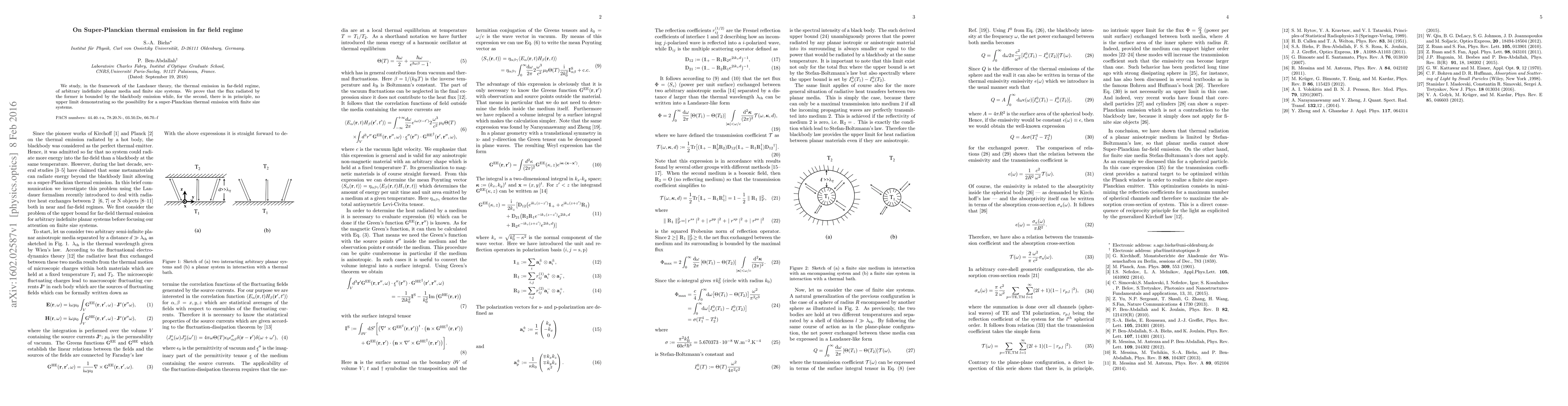 Summary: This study, grounded in Landauer theory, explores thermal emission in the far-field regime of planar media, showing that infinite media cannot exceed blackbody limits, but finite size systems can achieve super-Planckian thermal emission.