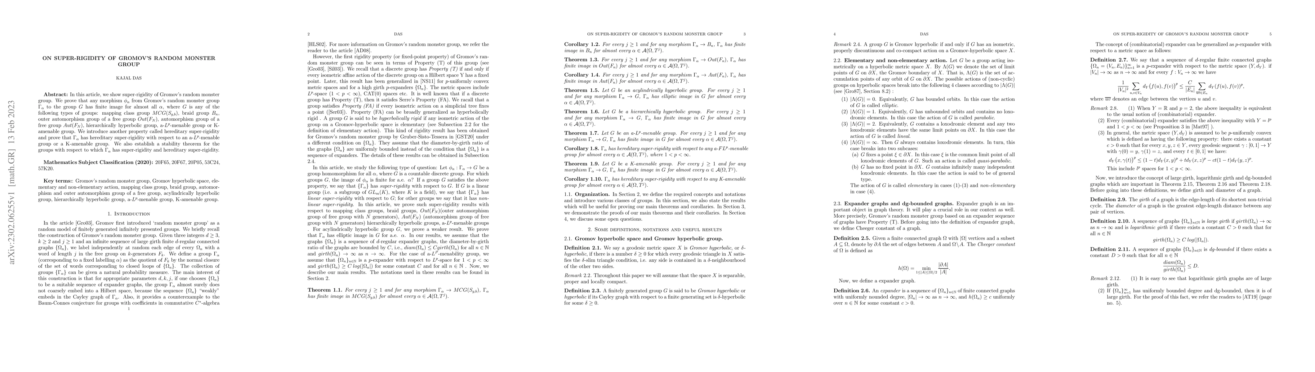 This paper demonstrates the super-rigidity of Gromov's random monster group $\Gamma_\alpha$, proving that any morphism from $\Gamma_\alpha$ to various types of groups has a finite image for almost all $\alpha$. It also introduces hereditary super-rigidity and establishes a stability theorem for these groups.