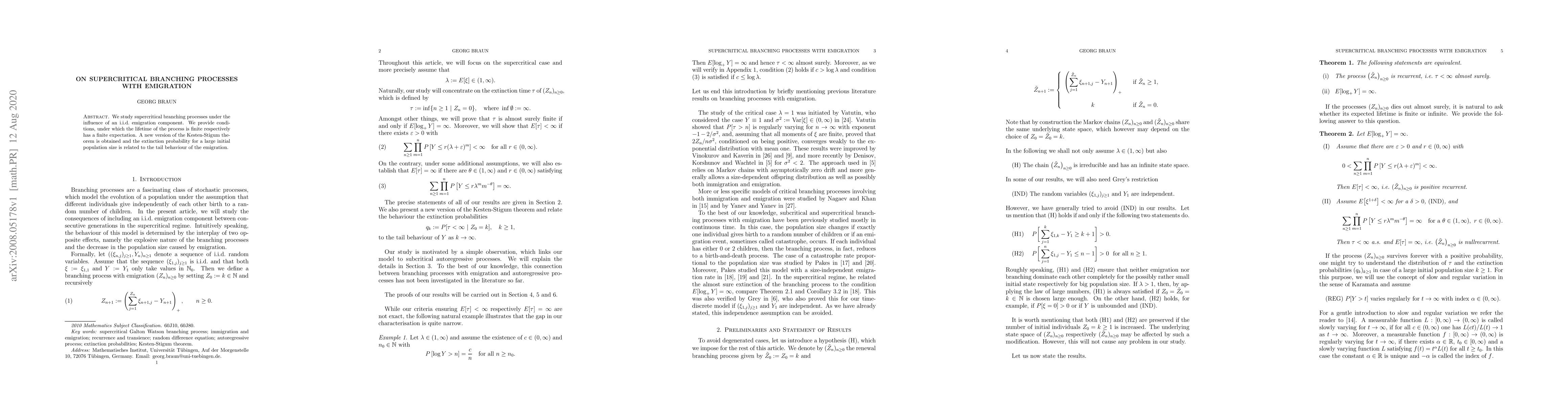 We study supercritical branching processes under the influence of an i.i.d. emigration component. We provide conditions, under which the lifetime of the process is finite respectively has a finite expectation. A new version of the Kesten-Stigum theorem is obtained and the extinction probability for a large initial population size is related to the tail behaviour of the emigration.