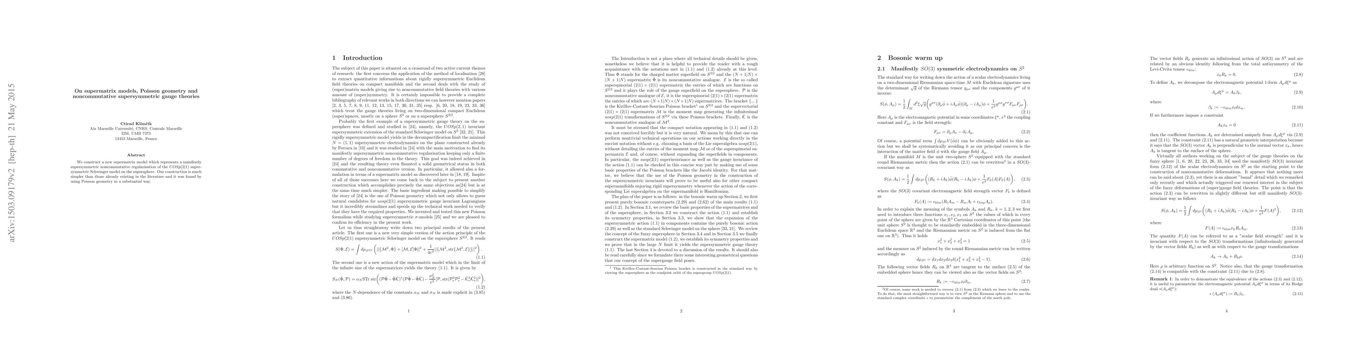Summary: The paper presents a simplified supermatrix model that provides a supersymmetric noncommutative regularization of the $UOSp(2\vert 1)$ supersymmetric Schwinger model, utilizing Poisson geometry for its construction. The approach offers a more straightforward method compared to previous literature.