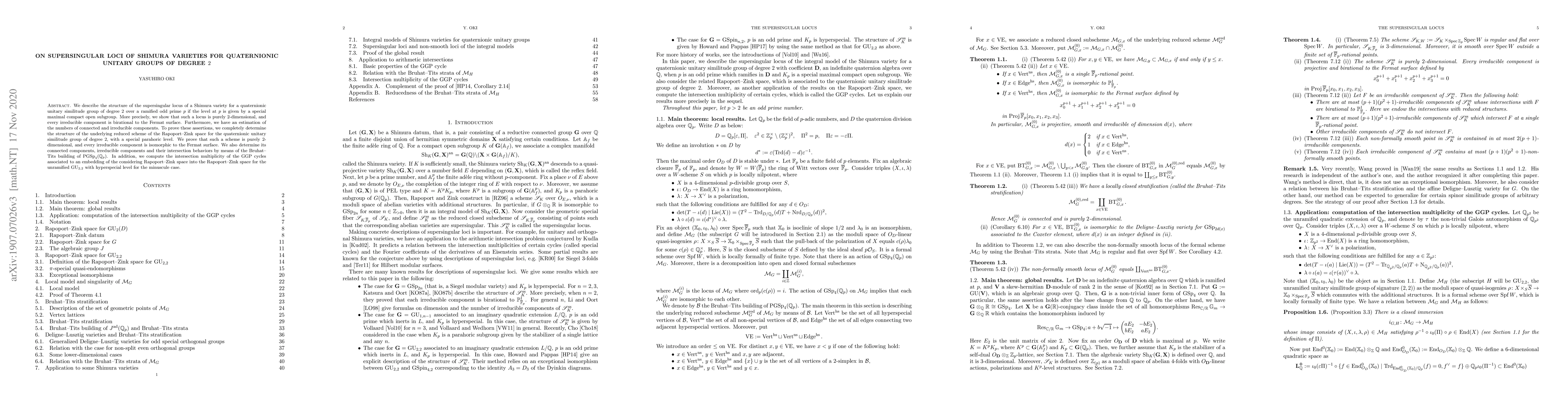 The paper describes the structure of supersingular loci for Shimura varieties associated with quaternionic unitary similitude groups of degree 2 over a ramified odd prime p, revealing purely 2-dimensional components birational to the Fermat surface.