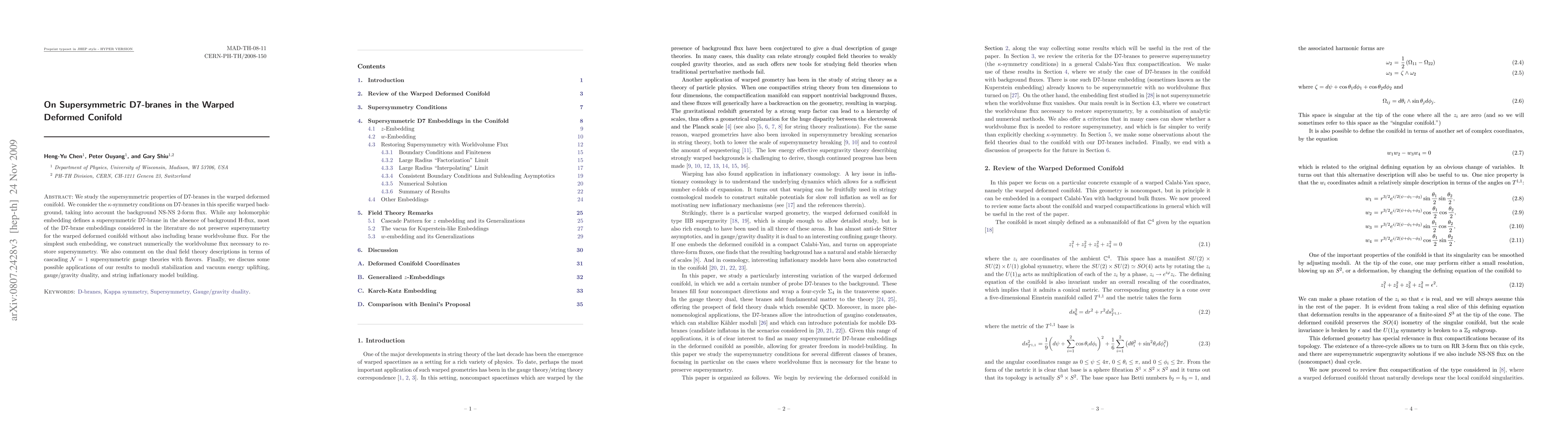 This paper investigates supersymmetric D7-branes in a warped deformed conifold background, determining the necessary worldvolume flux to preserve supersymmetry. It also explores implications for moduli stabilization, vacuum energy uplifting, and gauge/gravity duality.