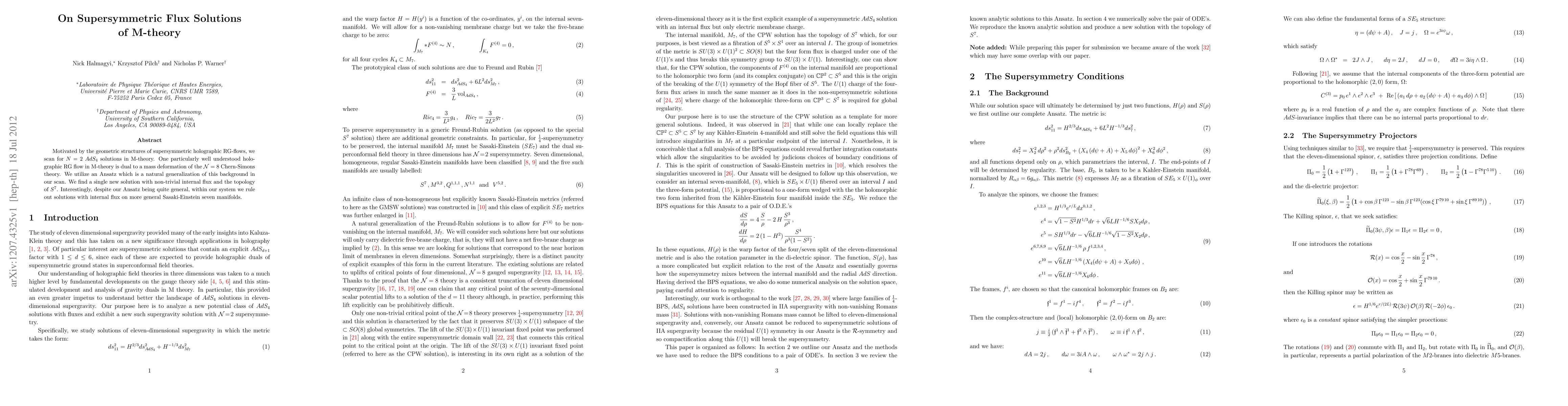 This paper finds a new N=2 AdS_4 solution in M-theory with non-trivial internal flux and the topology of S^7, using a generalized Ansatz. It rules out similar solutions on more general Sasaki-Einstein seven manifolds despite the Ansatz's generality.