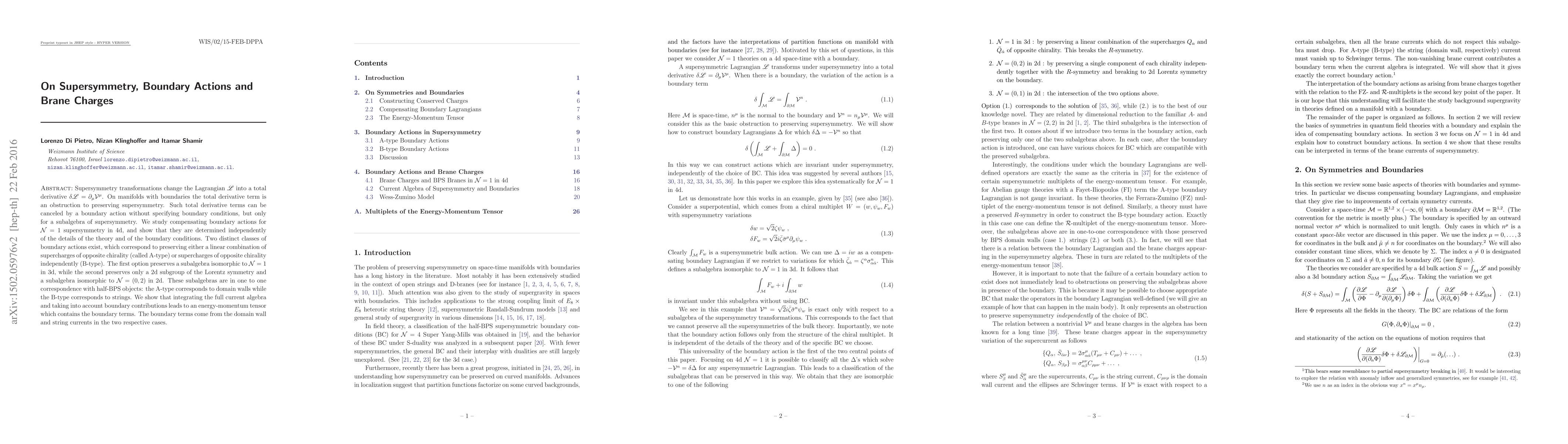This paper explores how supersymmetry can be preserved on manifolds with boundaries by introducing compensating boundary actions. It identifies two classes of boundary actions corresponding to different subalgebras of $\mathcal{N}=1$ supersymmetry in 4d, which relate to half-BPS objects like domain walls and strings.