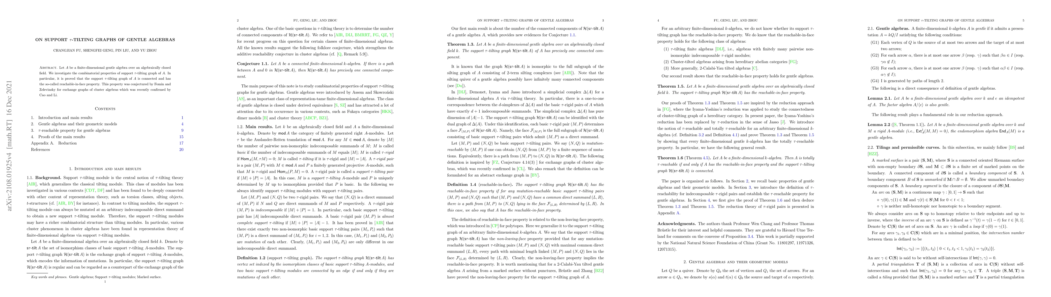 This paper studies the combinatorial properties of support $\tau$-tilting graphs for finite-dimensional gentle algebras, proving they are connected and possess the reachable-in-face property, a conjecture recently confirmed for exchange graphs of cluster algebras.