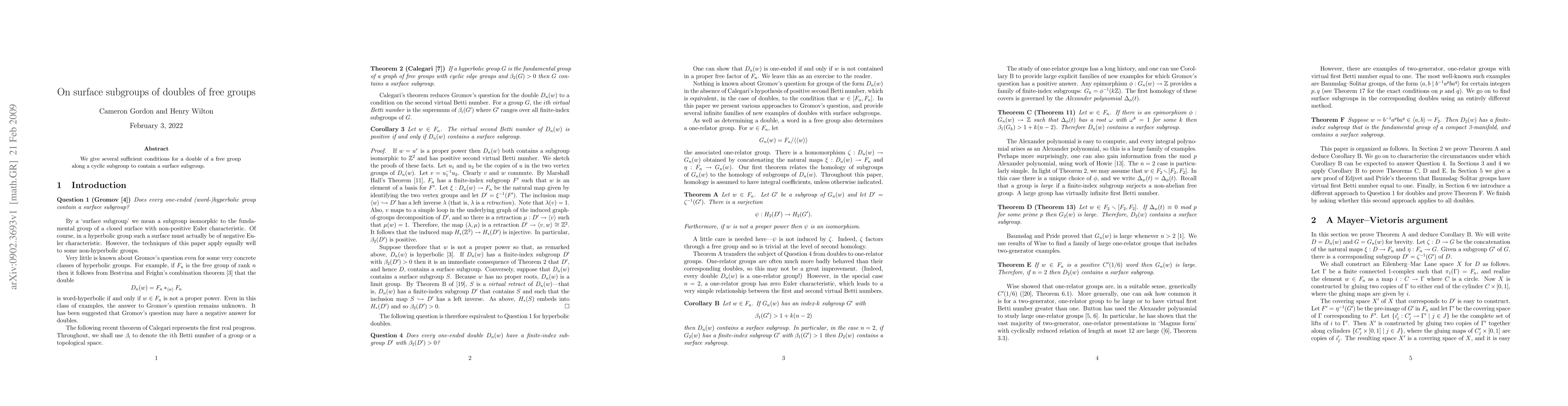 We give several sufficient conditions for a double of a free group along a cyclic subgroup to contain a surface subgroup.