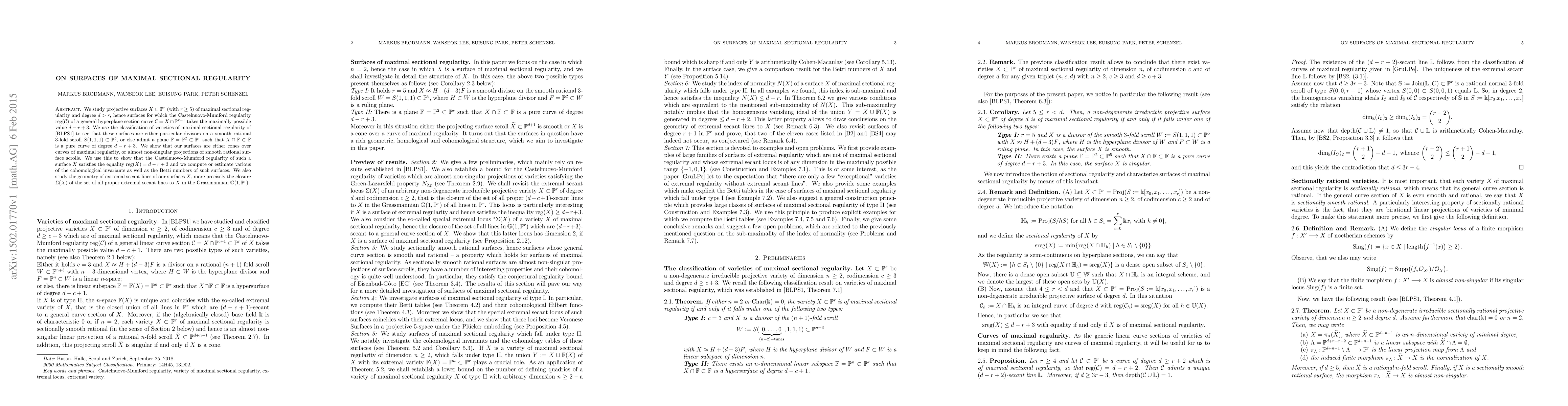 This paper classifies projective surfaces of maximal sectional regularity and degree greater than the ambient projective space dimension, showing they are either divisors on a scroll or curves on a plane with specific properties. It establishes their Castelnuovo-Mumford regularity and computes their cohomological invariants and Betti numbers.