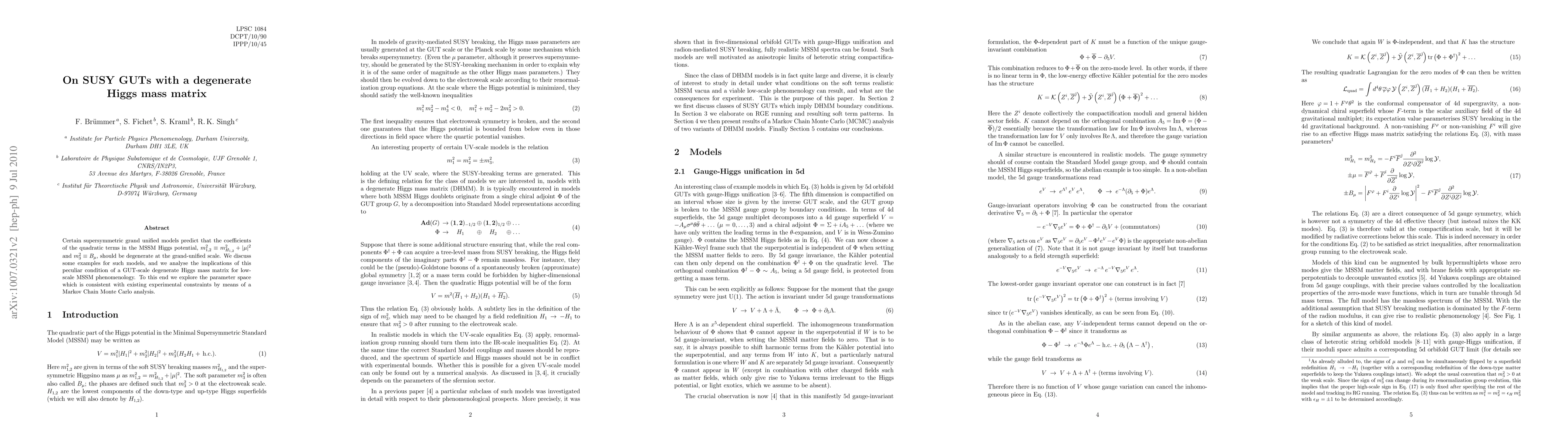 Certain supersymmetric grand unified models predict that the coefficients of the quadratic terms in the MSSM Higgs potential should be degenerate at the GUT scale. We discuss some examples for such models, and we analyse the implications of this peculiar condition of a GUT-scale degenerate Higgs mass matrix for low-scale MSSM phenomenology. To this end we explore the parameter space which is consistent with existing experimental constraints by means of a Markov Chain Monte Carlo analysis.