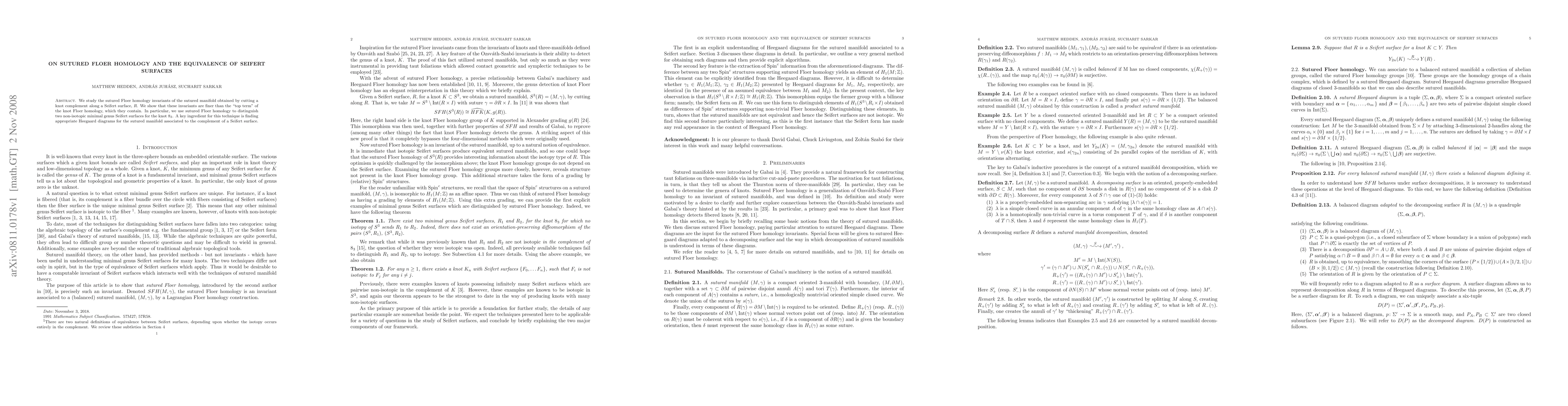 This paper investigates sutured Floer homology for sutured manifolds formed by cutting a knot complement along a Seifert surface, demonstrating that these invariants are more refined than traditional knot Floer homology. It particularly distinguishes between two non-isotopic minimal genus Seifert surfaces for the knot 8_3 using appropriate Heegaard diagrams.