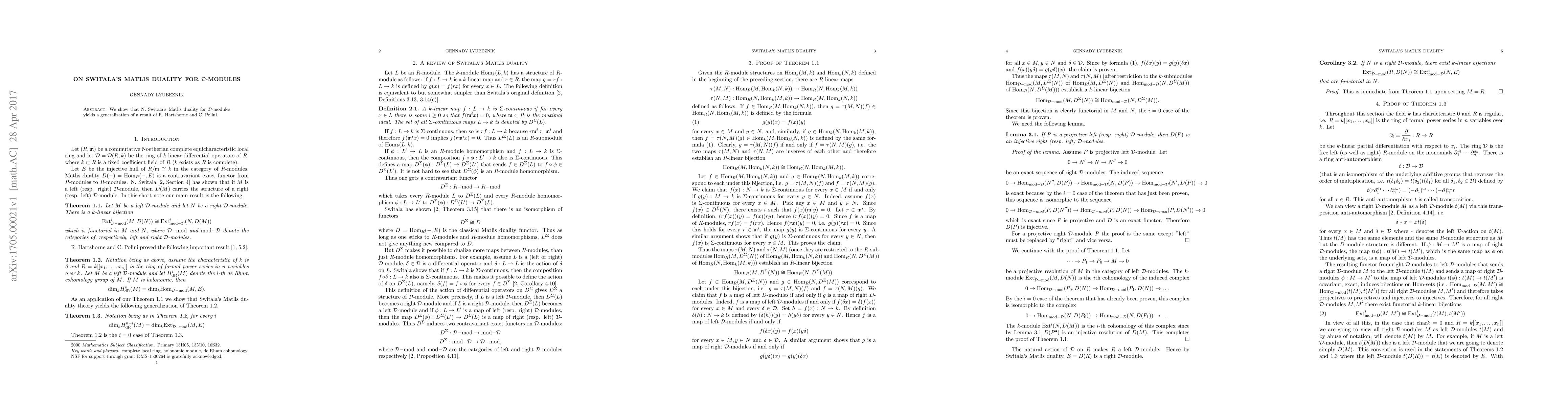 Switala's Matlis duality for $\mathcal D$-modules extends Hartshorne and Polini's result, offering a new generalization in the context of differential operators.