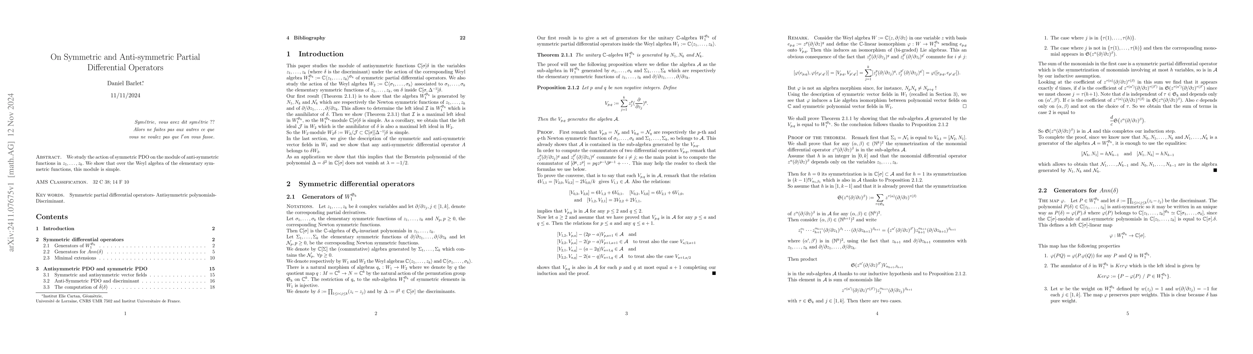 Summary: This paper investigates how symmetric partial differential operators act on anti-symmetric functions. It demonstrates that within the Weyl algebra of elementary symmetric functions, the resulting module is simple.
