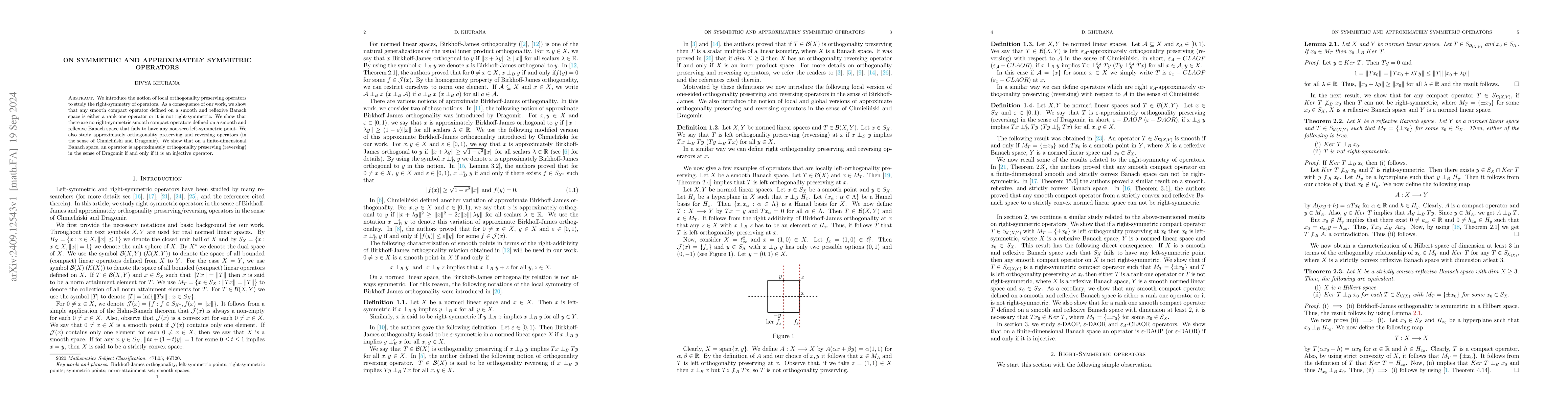 We introduce the notion of local orthogonality preserving operators to study the right-symmetry of operators. As a consequence of our work, we show that any smooth compact operator defined on a smooth and reflexive Banach space is either a rank one operator or it is not right-symmetric. We show that there are no right-symmetric smooth compact operators defined on a smooth and reflexive Banach space that fails to have any non-zero left-symmetric point. We also study approximately orthogonality preserving and reversing operators (in the sense of Chmieli\'{n}ski and Dragomir). We show that on a finite-dimensional Banach space, an operator is approximately orthogonality preserving (reversing) in the sense of Dragomir if and only if it is an injective operator.