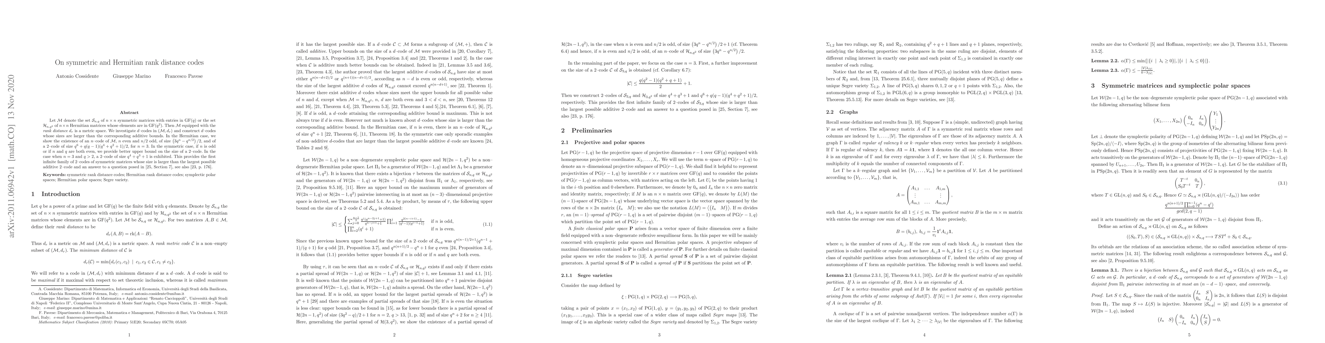 Let $\cal M$ denote the set ${\cal S}_{n, q}$ of $n \times n$ symmetric matrices with entries in ${\rm GF}(q)$ or the set ${\cal H}_{n, q^2}$ of $n \times n$ Hermitian matrices whose elements are in ${\rm GF}(q^2)$. Then $\cal M$ equipped with the rank distance $d_r$ is a metric space. We investigate $d$-codes in $({\cal M}, d_r)$ and construct $d$-codes whose sizes are larger than the corresponding additive bounds. In the Hermitian case, we show the existence of an $n$-code of $\cal M$, $n$ even and $n/2$ odd, of size $\left(3q^{n}-q^{n/2}\right)/2$, and of a $2$-code of size $q^6+ q(q-1)(q^4+q^2+1)/2$, for $n = 3$. In the symmetric case, if $n$ is odd or if $n$ and $q$ are both even, we provide better upper bound on the size of a $2$-code. In the case when $n = 3$ and $q>2$, a $2$-code of size $q^4+q^3+1$ is exhibited. This provides the first infinite family of $2$-codes of symmetric matrices whose size is larger than the largest possible additive $2$-code.