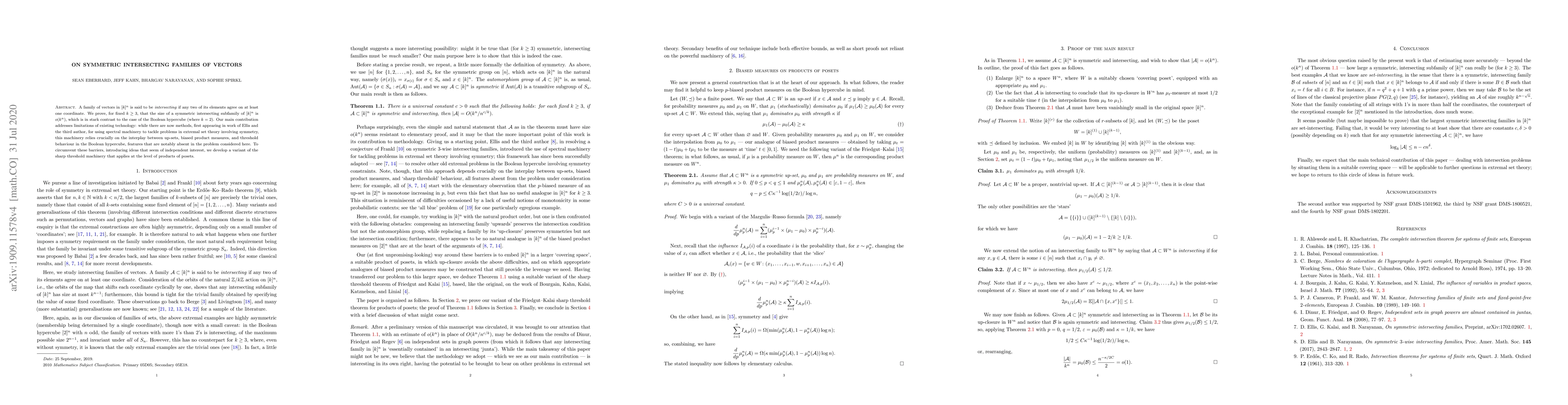 This paper proves that the size of a symmetric intersecting subfamily of vectors in $[k]^n$ for fixed $k \ge 3$ is $o(k^n)$, contrasting with the Boolean hypercube case. The authors introduce a new method to overcome limitations of existing spectral machinery, which previously relied on features absent in this problem.