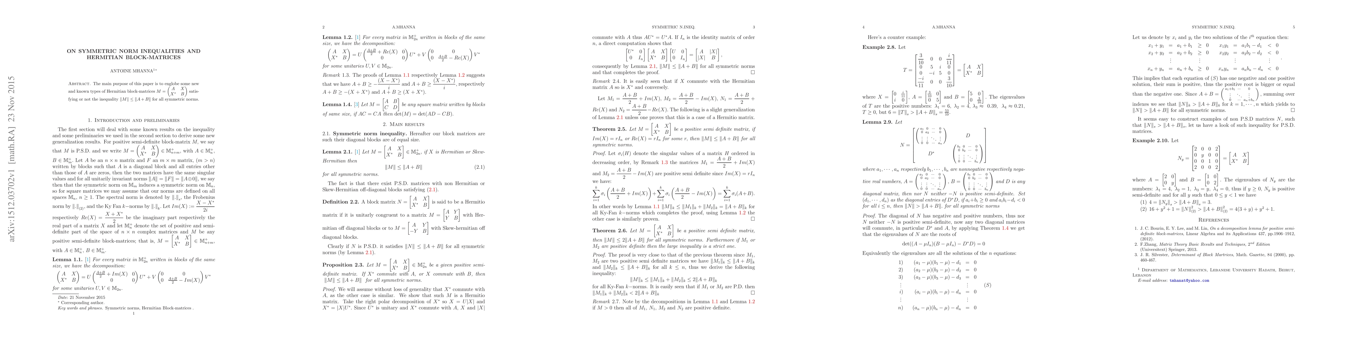 This paper investigates symmetric norm inequalities for Hermitian block-matrices, finding conditions under which a specific inequality holds true, with implications for matrix theory and analysis.