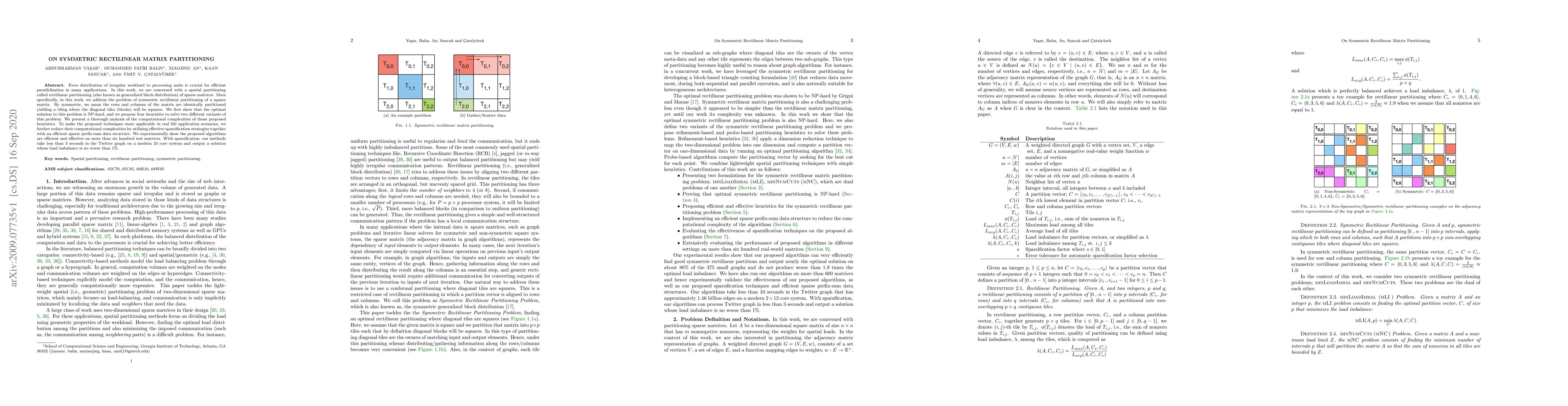 Researchers developed efficient algorithms for partitioning symmetric rectilinear matrices to distribute irregular workloads efficiently in parallel applications. Their methods achieved fast computation times while maintaining load balance, outperforming 600 test matrices.
