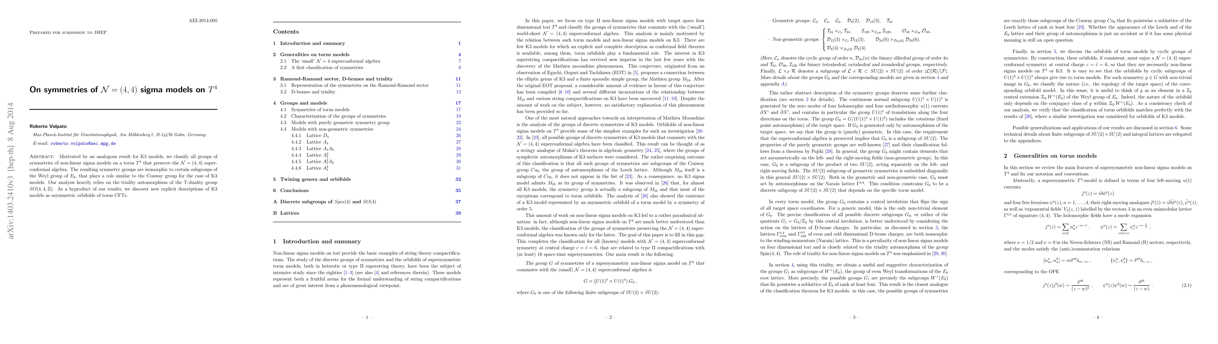 This paper classifies symmetry groups of N=(4,4) sigma models on a T^4 torus, finding they are isomorphic to subgroups of the E8 Weyl group. The study leverages the T-duality group and reveals new descriptions of K3 models as asymmetric orbifolds.