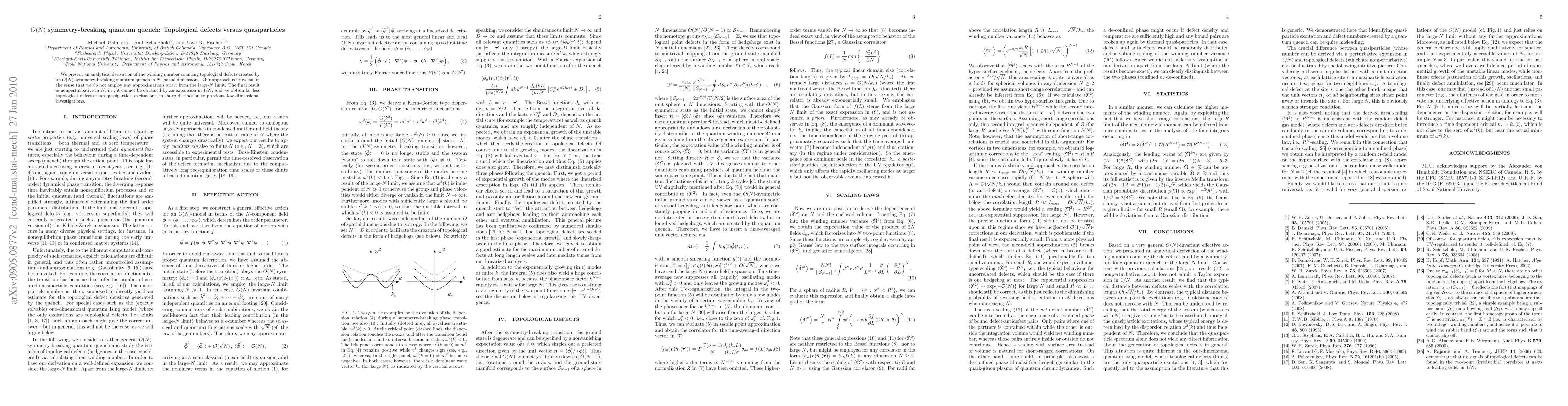 We present an analytical derivation of the winding number counting topological defects created by an O(N) symmetry-breaking quantum quench in N spatial dimensions. Our approach is universal in the sense that we do not employ any approximations apart from the large-$N$ limit. The final result is nonperturbative in N, i.e., it cannot be obtained by %the usual an expansion in 1/N, and we obtain far less topological defects than quasiparticle excitations, in sharp distinction to previous, low-dimensional investigations.