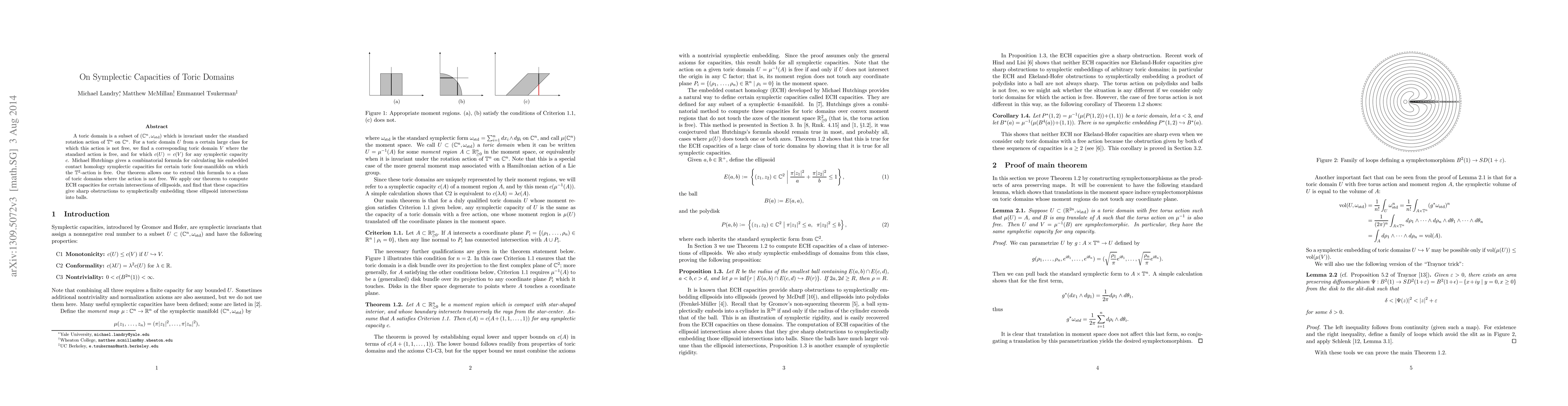 This paper investigates the symplectic capacities of toric domains in complex spaces, proving that for certain non-free toric domains, there exists a corresponding free-action domain with equal capacities. It extends Michael Hutchings' combinatorial formula for embedded contact homology capacities to a broader class of toric domains, applying the results to compute ECH capacities for ellipsoid intersections and demonstrating their role as sharp obstructions for symplectic embeddings.