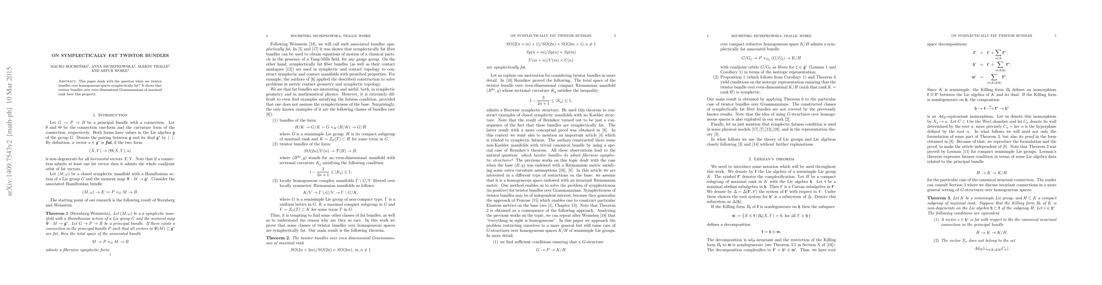 This paper finds that twistor bundles over even-dimensional Grassmannians of maximal rank have a symplectically fat property, addressing the question of when these bundles are symplectically fat.