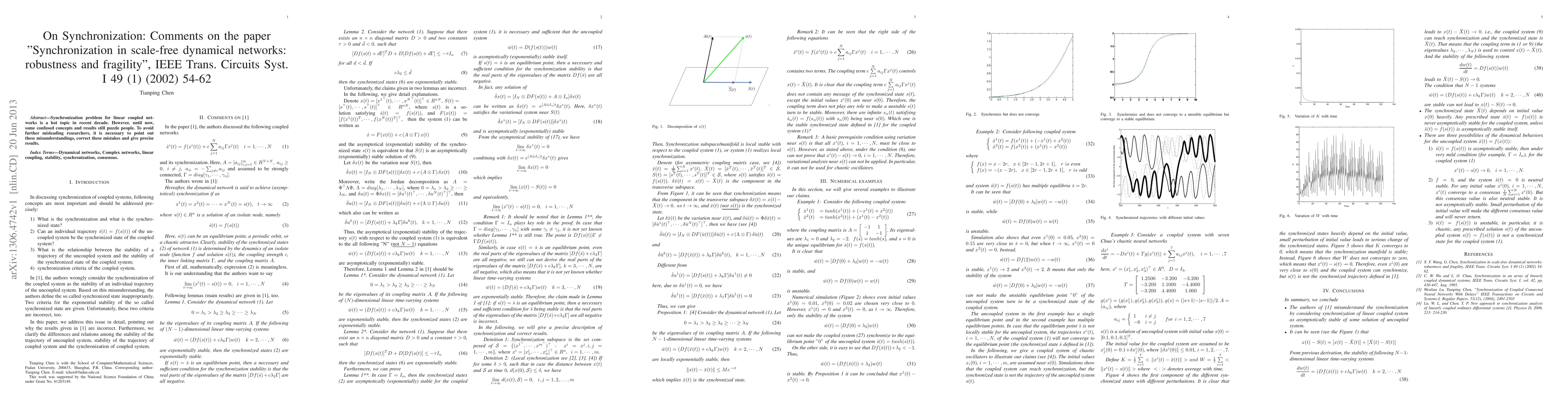 This paper critiques previous research on synchronization in scale-free dynamical networks, highlighting misunderstandings and providing precise results to clarify the concept of robustness and fragility. It aims to provide accurate understanding for researchers to avoid further confusion.