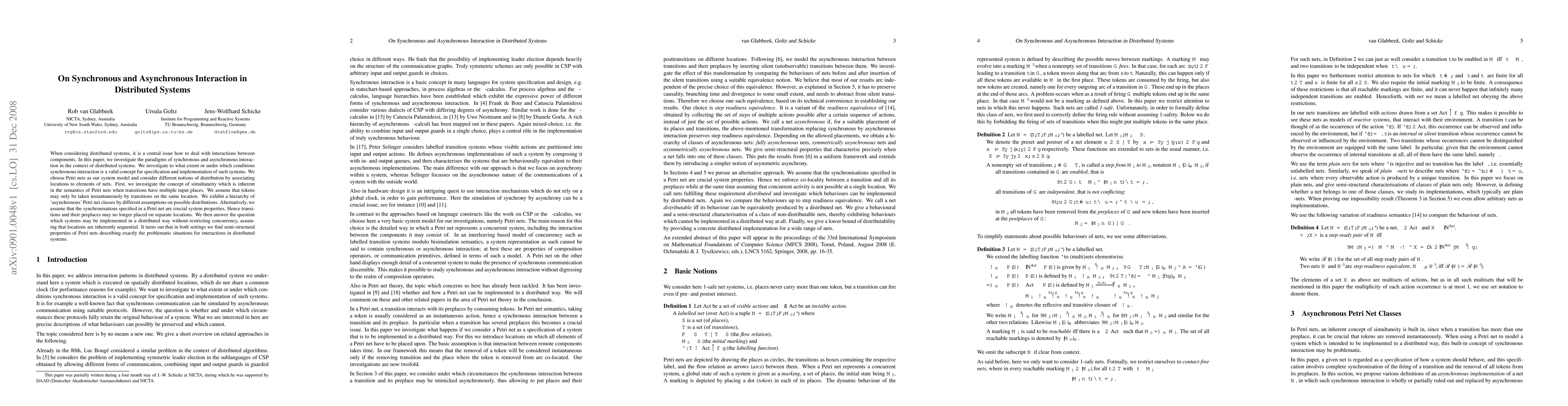 This paper explores synchronous and asynchronous interaction paradigms in distributed systems, using Petri nets as a model. It investigates conditions under which synchronous interaction is feasible and identifies semi-structural properties of Petri nets that highlight problematic situations for distributed interactions.