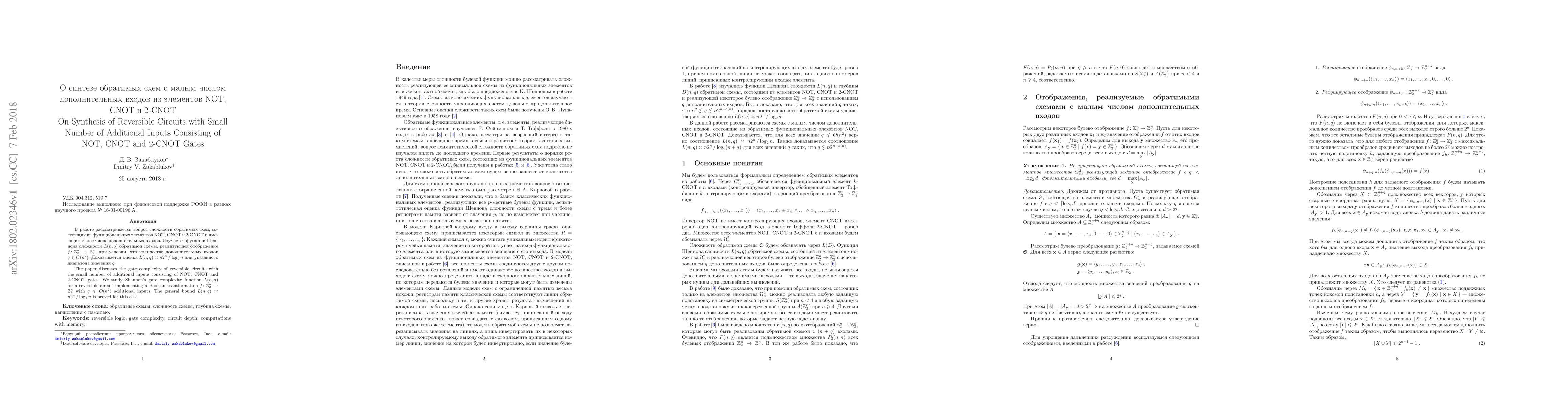 The paper discusses the gate complexity of reversible circuits with the small number of additional inputs consisting of NOT, CNOT and 2-CNOT gates. We study Shannon's gate complexity function $L(n, q)$ for a reversible circuit implementing a Boolean transformation $f\colon \mathbb Z_2^n \to \mathbb Z_2^n$ with $q \leqslant O(n^2)$ additional inputs. The general bound $L(n,q) \asymp n2^n \mathop / \log_2 n$ is proved for this case.