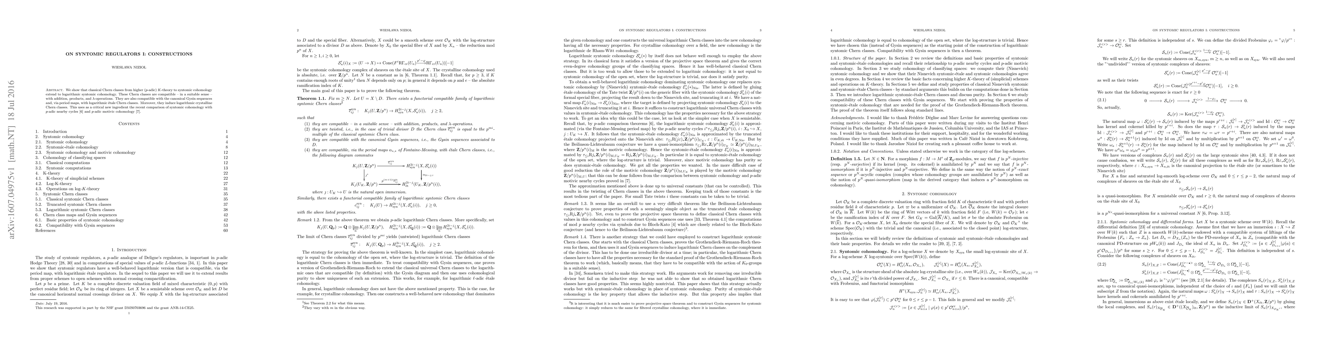 This paper constructs Chern classes extending from $p$-adic $K$-theory to logarithmic syntomic cohomology, showing compatibility with addition, products, $\lambda$-operations, and Gysin sequences, and establishing connections with logarithmic \'etale and crystalline Chern classes, facilitated by the recent comparison of syntomic cohomology with $p$-adic nearby cycles and motivic cohomology.