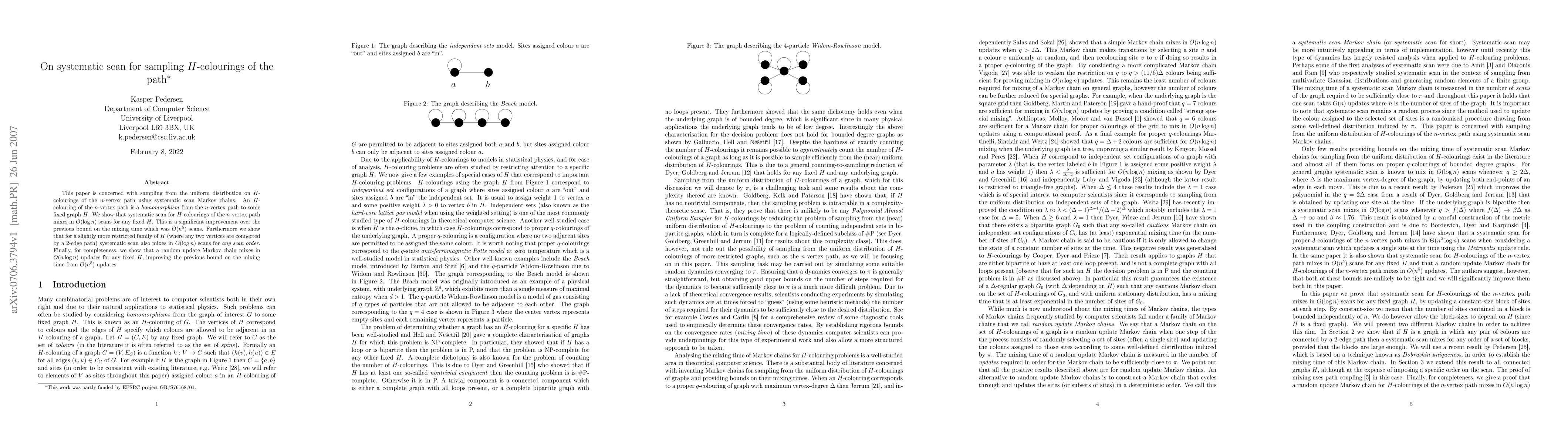 This paper presents a systematic scan Markov chain for sampling H-colourings of an n-vertex path, demonstrating that it mixes in O(log n) scans, significantly improving the previous O(n^5) scans bound. It also shows similar efficiency for a restricted family of H and compares with a random update Markov chain, which mixes in O(n log n) updates.
