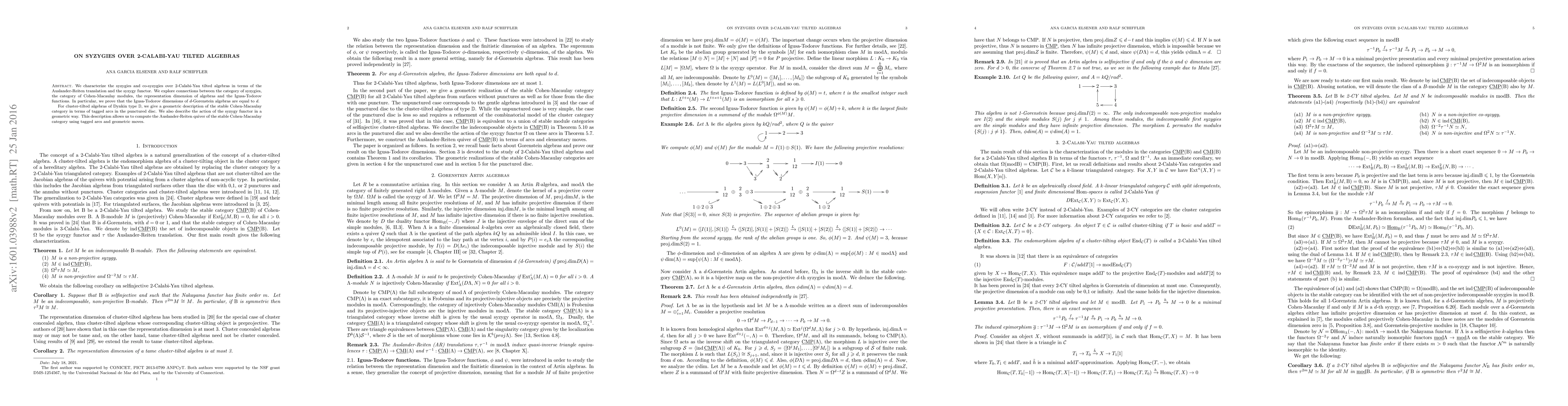 This paper characterizes syzygies and co-syzygies over 2-Calabi-Yau tilted algebras via Auslander-Reiten translation, revealing connections to Cohen-Macaulay modules and representation dimension. It geometrically describes stable Cohen-Macaulay categories for cluster-tilted algebras and computes their Auslander-Reiten quiver using tagged arcs.