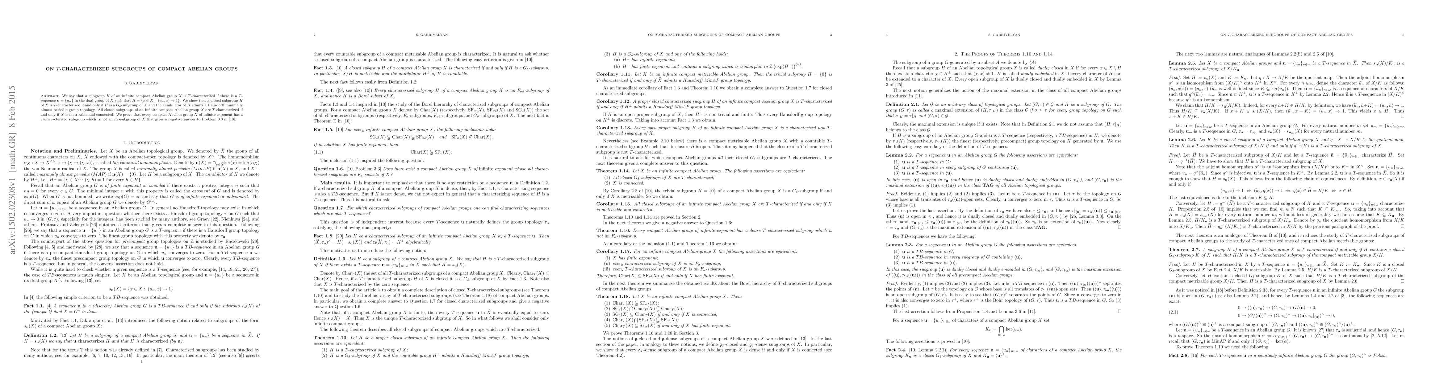 This paper investigates $T$-characterized subgroups in infinite compact Abelian groups, proving that such subgroups are $G_\delta$ and have a specific topological property for their annihilators. It concludes that all closed subgroups of an infinite compact Abelian group are $T$-characterized if and only if the group is metrizable and connected.