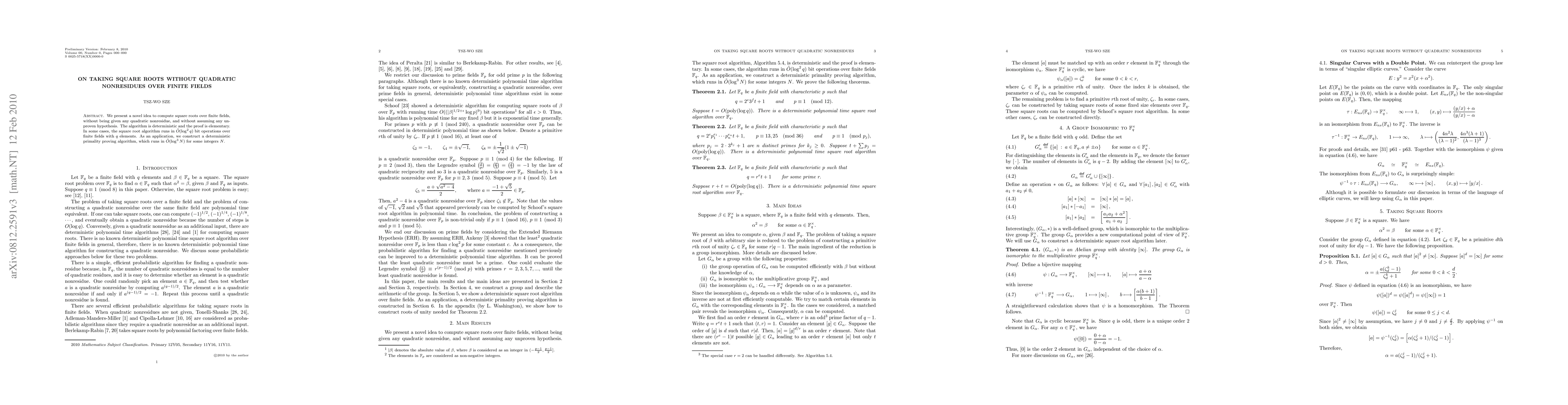 We present a novel idea to compute square roots over finite fields, without being given any quadratic nonresidue, and without assuming any unproven hypothesis. The algorithm is deterministic and the proof is elementary. In some cases, the square root algorithm runs in $\tilde{O}(\log^2 q)$ bit operations over finite fields with $q$ elements. As an application, we construct a deterministic primality proving algorithm, which runs in $\tilde{O}(\log^3 N)$ for some integers $N$.