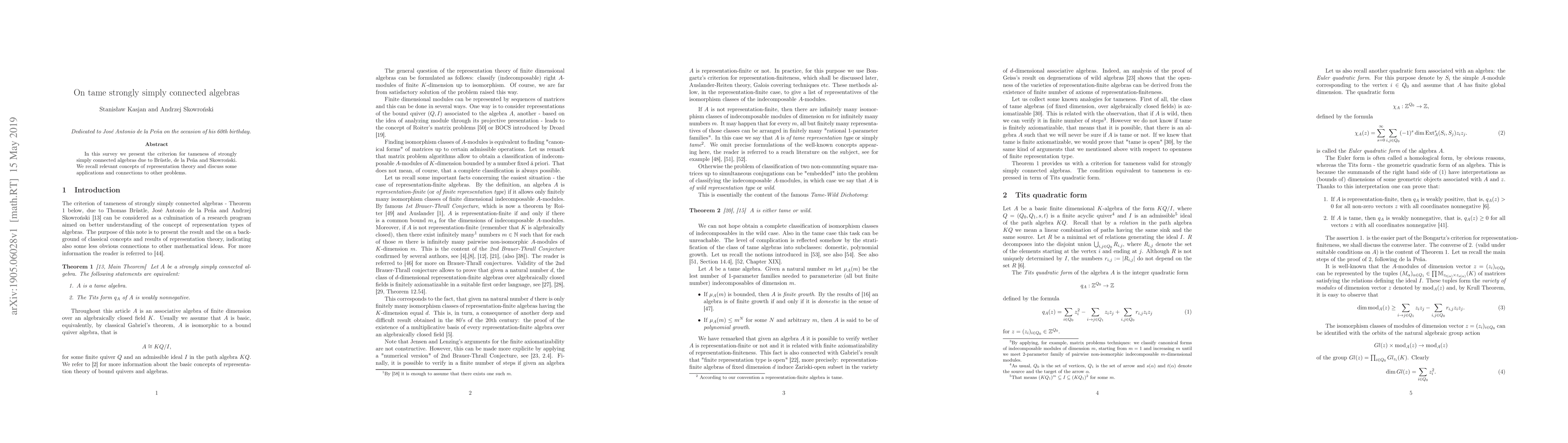 In this survey we present the criterion for tameness of strongly simply connected algebras due to Br\"ustle, de la Pe\~na and Skowro\'nski. We recall relevant concepts of representation theory and discuss some applications and connections to other problems.