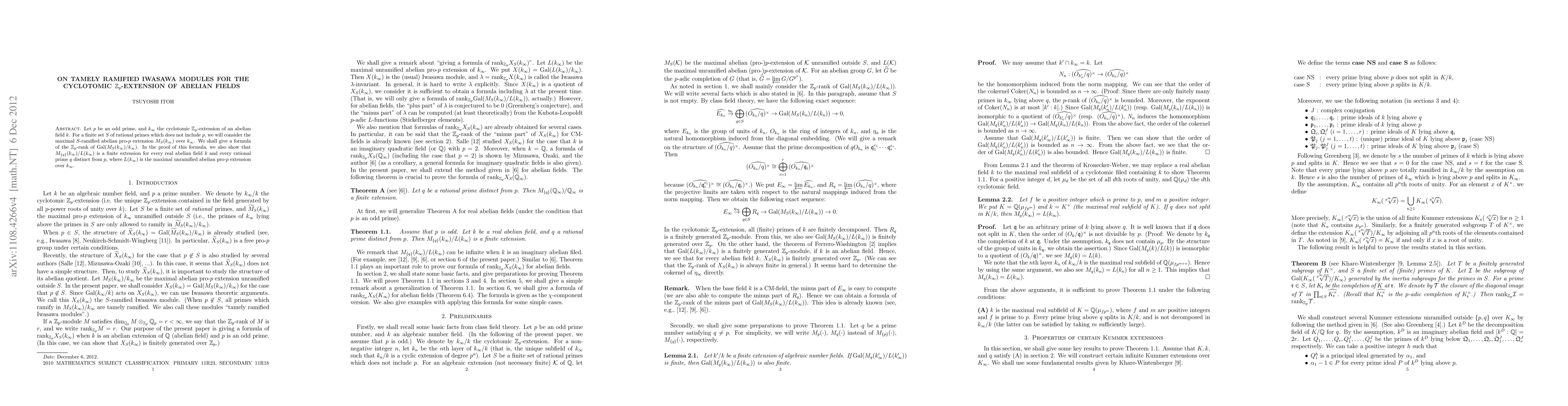 This paper presents a formula for the Z_p-rank of the maximal S-ramified abelian pro-p extension over the cyclotomic Z_p-extension of an abelian field, excluding the prime p. Additionally, it proves that for any distinct rational prime q, the extension M_q(k_∞)/L(k_∞) is finite, where L(k_∞) is the maximal unramified abelian pro-p extension.
