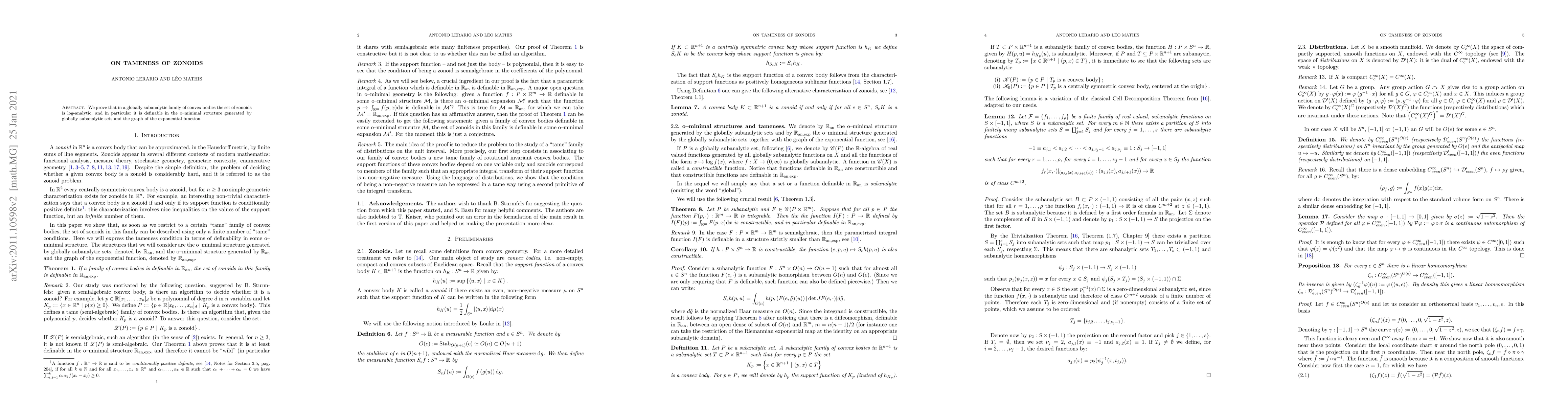This paper proves that zonoids in globally subanalytic families of convex bodies are log-analytic and definable in an o-minimal structure, with implications for the study of convex bodies and their geometric properties.