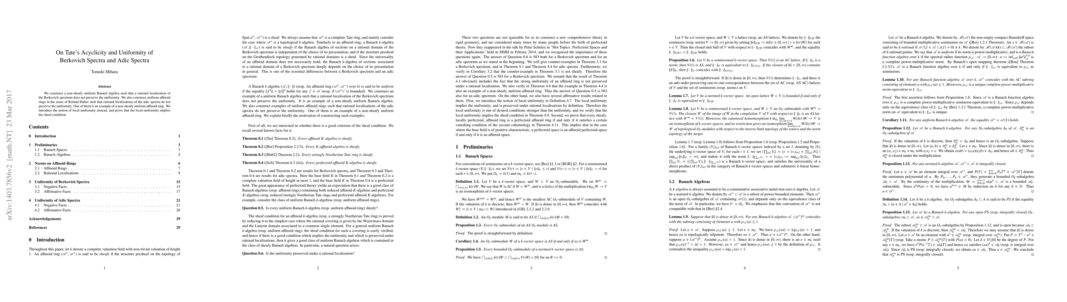 We construct a non-sheafy uniform Banach algebra such that a rational localisation of the Berkovich spectrum does not preserve the uniformity. We also construct uniform affinoid rings in the sense of Roland Huber such that rational localisations of the adic spectra do not preserve the uniformity. One of them is an example of a non-sheafy uniform affinoid ring. We introduce the notion of local uniformity instead, and prove that the local uniformity implies the sheaf condition.