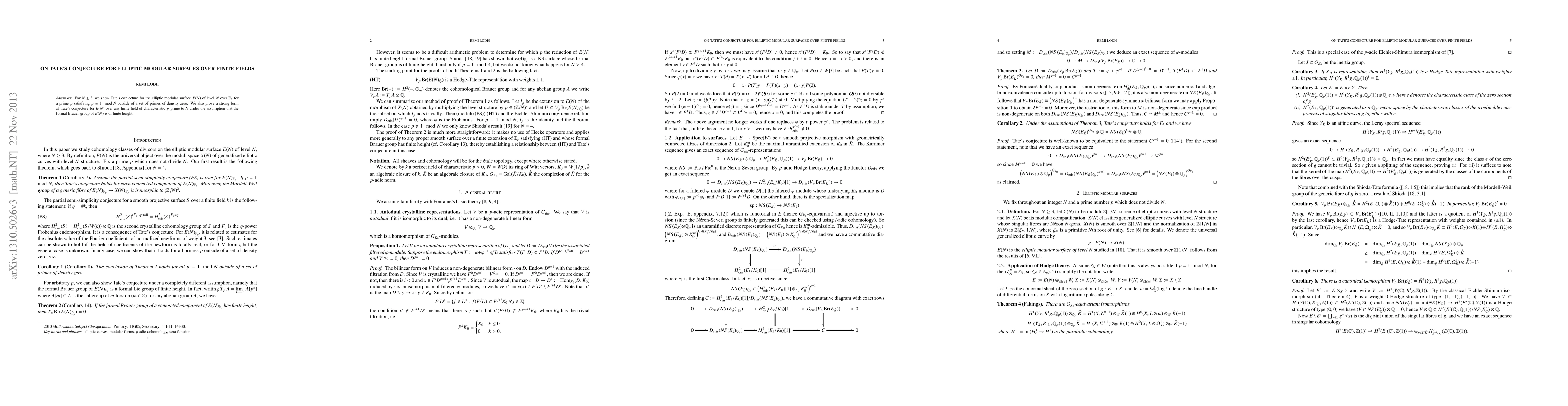 This paper proves Tate's conjecture for the elliptic modular surface $E(N)$ over finite fields $\mathbb{F}_p$ for $p\equiv 1 \mod N$ outside a set of primes of density zero, and establishes a strong form of the conjecture under the condition that the formal Brauer group of $E(N)$ has finite height.