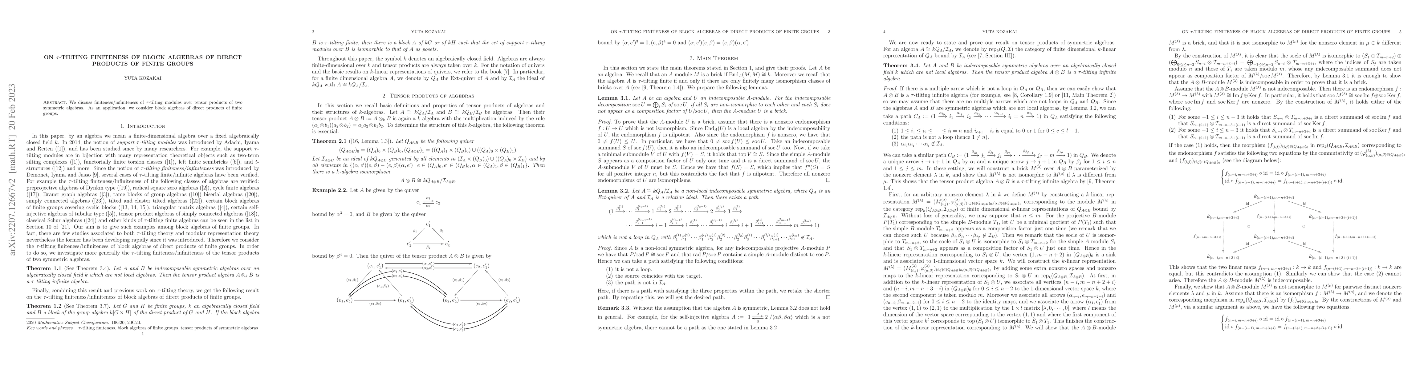 Summary: This paper investigates the finiteness of $\tau$-tilting modules over tensor products of symmetric algebras, applying the findings to block algebras of direct products of finite groups. The results provide insights into the structure of these modules.