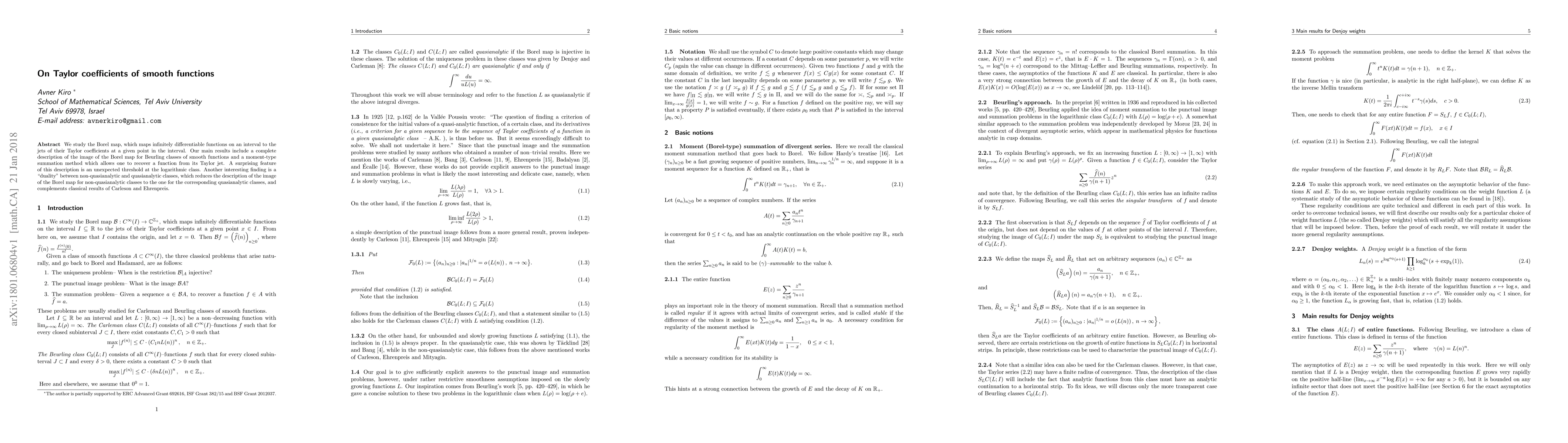 This paper investigates the Borel map linking smooth functions to their Taylor coefficients, revealing the image of this map for Beurling classes and introducing a moment-type method to reconstruct functions from their Taylor jets. It uncovers a logarithmic threshold and demonstrates a duality between non-quasianalytic and quasianalytic classes.