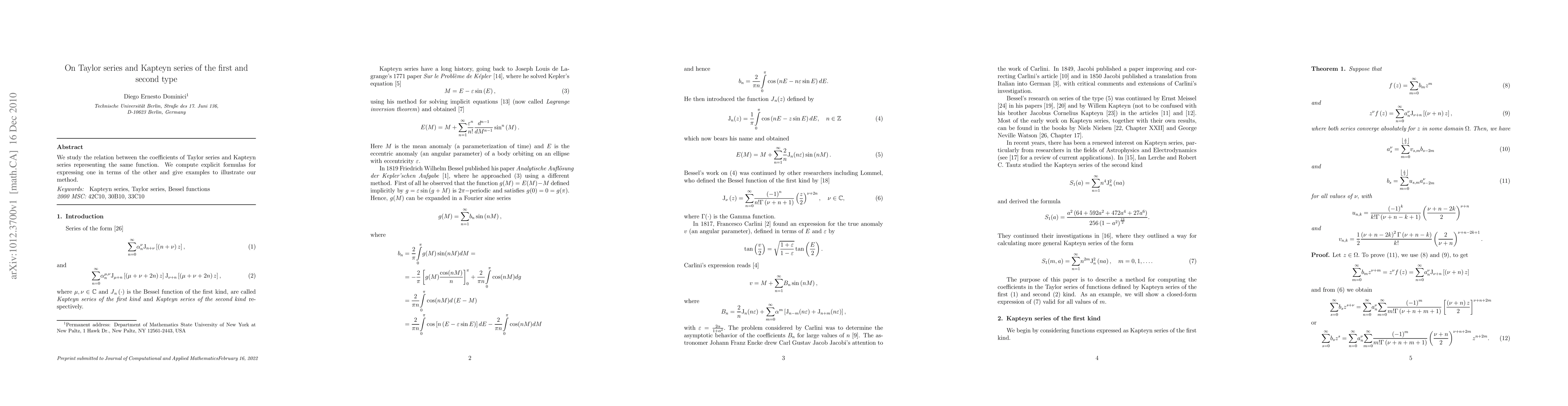 This paper investigates the relationship between Taylor series and Kapteyn series, providing explicit formulas to convert coefficients from one representation to the other and illustrating the method with examples.