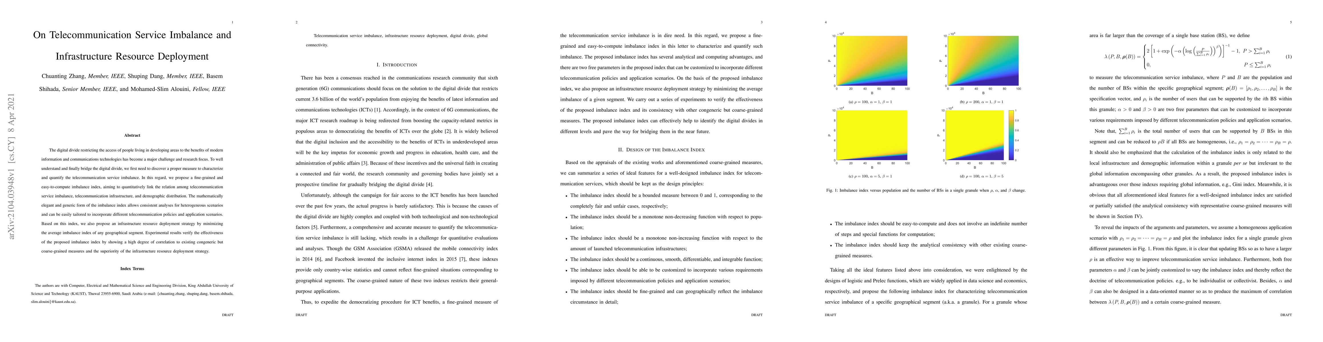 This paper proposes a fine-grained imbalance index to quantify telecommunication service imbalance in developing regions, linking it to infrastructure and demographics. It also introduces an infrastructure deployment strategy minimizing the average imbalance, validated by experiments showing its effectiveness.