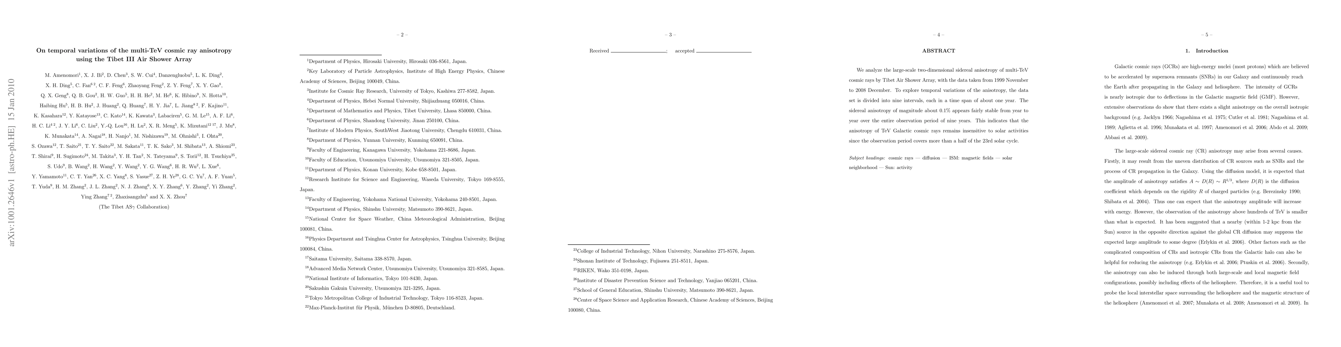 This paper investigates the temporal variations of multi-TeV cosmic ray anisotropy using the Tibet III Air Shower Array over nine years. The analysis reveals a stable sidereal anisotropy of about 0.1% annually, suggesting that TeV Galactic cosmic rays are unaffected by solar activity fluctuations.