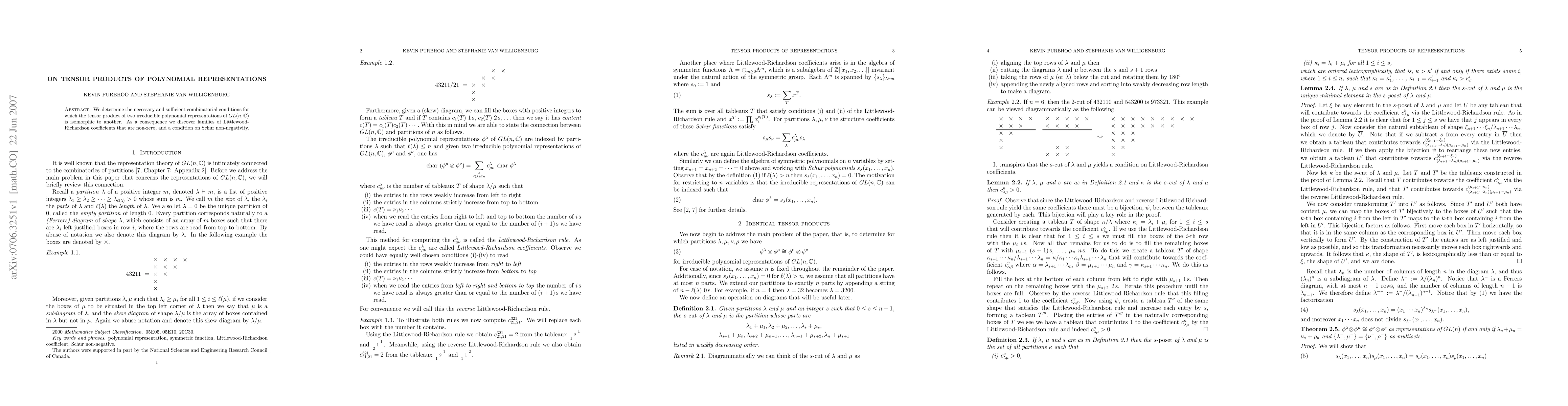 This research paper determines necessary conditions for when the tensor product of two irreducible polynomial representations of GL(n,C) is isomorphic to another, leading to discoveries about Littlewood-Richardson coefficients and Schur non-negativity.
