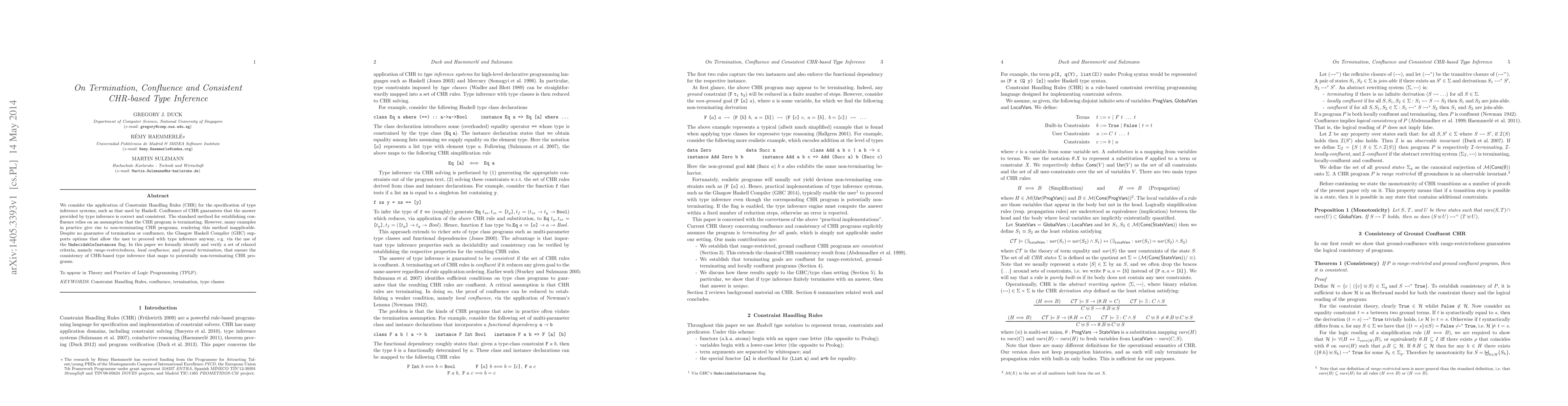 This paper explores the application of Constraint Handling Rules (CHR) for type inference in languages like Haskell, addressing the challenge of non-terminating CHR programs. It proposes relaxed criteria—range-restrictedness, local confluence, and ground termination—to ensure the consistency of CHR-based type inference despite potential non-termination.