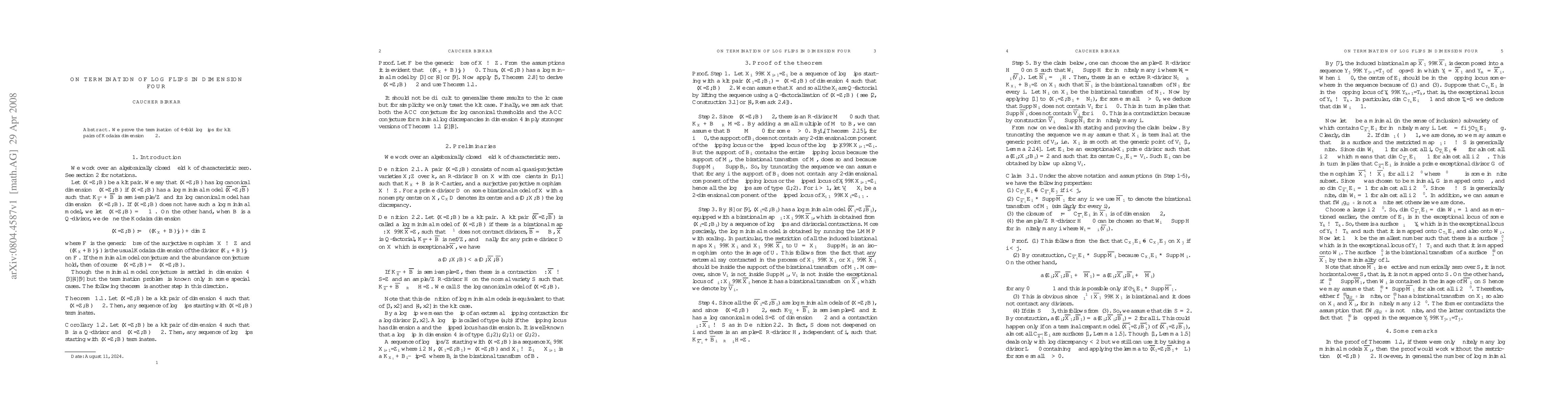 Summary: This paper establishes the termination of 4-fold log flips for klt pairs in dimension four when the Kodaira dimension is at least two. The result contributes to the understanding of birational geometry and the minimal model program.